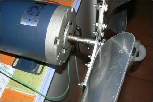 Hi Paul, these comments worry me considering you have a metal blade set. Mount to the thickest shaft. The bearing will probably be bigger at this end as well. This looks like a brushed motor windmill conversion. You mention hoping to go with a GTI. A battery helps to smooth the windmill peaks, so allows a smaller GTI. The motor will require diode blocking with a battery, as well as without the battery. Gordon. PS did the motor change colour, or are there 2? become more energy aware |