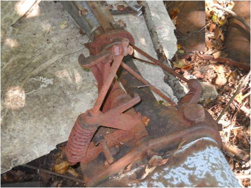 The bottom picture the small rods running down to the collar are part of the break actuator. the beakdrumand band can beseen a little more in the bottoom pic. The tail is up buy the house I had to take it off when I brought it home years ago. It was quite a load on a 1/2 ton pickup!!