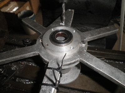 About a week ago the AXFX developed a knock. So dropped it down. It sounded like bearings. Of course I did use bearings out of a washing machine. I went and bought some new bearings. Once I loosened off the tension on the bearings the noise stopped. I stripped the machine down anyway. The old bearings felt good once I had them out. I think that the side load on the bearings was the problem. I made up a steel pipe spacer to go between the bearings on the shaft. I put the new bearings in. I changed the propeller shaft offset. It still did not track the wind like it should. It normally has about 25mm offset. I have drilled new holes so the offset is now only 12mm. The caps also turned up. So they are fitted as well. Trev @ drivebynature.com |