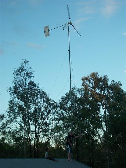 Last year i brought a Phill Wind turbine and done a lot of modifications over the last few months including adding a 7metre long 75x75 RHS which has been lying on the ground for several years now. The tower is 13 metres high fitting with 6 guy cables and has been painted like army camouflage so my brown-nose local council dept wont see the tower i hope.