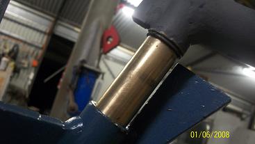 Changes have been made to the tail and pivot by welding bronze and machining into bronze shaft plus adding two “O” rings to keep the grease inside of the pivot shaft.