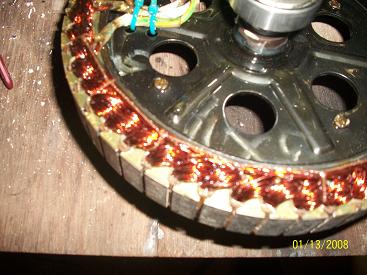 I'll post some more photos soon and I’m very happy to hear that you's all like my windmill toy. I put a lot of hard work on it on my lathe to do the testing on the stator running on heavy load around 400 to 700 watts for hours before stator got hot enough to put my hands on however soon i pulled the stator cover off found out those copper wire inside was ever much hotter and the heat had no where to delepet and thats the reason i add small mount approx 200 ml special auto electronic transmission oil so heat can transfers to the housing as extra benefit in cooling the coil down without burning the enamels off. theres no torque affect all same with neo manget’s glue after sitting in the shed waiting for rain to stop since November last year.Anyway windmill will be up running next week