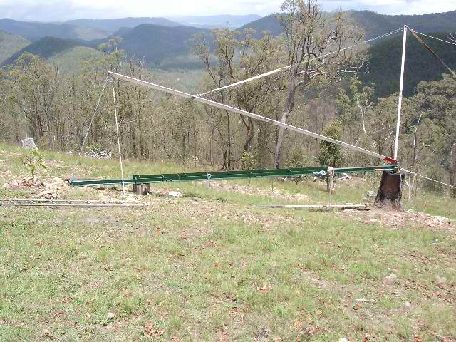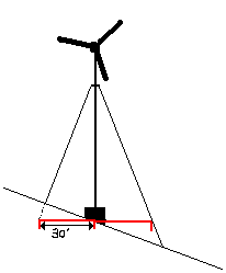 This one is tricky(for me). The base block and attachment steelwork is fitted for my mast. the land is sloping quite a bit , forward and aft guy anchor points are not a problem. Now ,the big question is , how do I calculate accurately the side "point-of-attachment" length from the centre ,say 30 feet out from centre ?. The high side is no problem as the ground is level at this point-just drive a peg in at 30 feet. The other side of ground falls away --is there a easy way to accurately measure and peg the point -of -attachment for this side ? any takers? Thanks Bruce