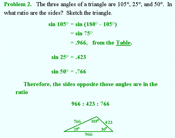 Yeehaw, trig isn't as hard as I remember it!, theres a massive amount of info on the net. If my understanding of your problem is correct, then I've found a nice little way to work out the ground length, thats if the mast/wire angle is known, and the mast/ground angle is known, and the mast hight is known. It's simple ratio's: ![]() The mentioned table is here: http://www.themathpage.com/aTrig/trigonometric-table.htm So, for this example, if the 766 is the mast and the 423 is the ground, then the ground length is 423/766 = 55.2% of the mast height. Nice. to quote the website: 'The sides of a triangle are to one another in the same ratio as the sines of their opposite angles' - the Sine Law apparently! Ok, hope that helps, sorry for the multiple posts, and all the thinking out-aloud! Simo Edit: stupid link wouldnt link! Gonna try metatags. |