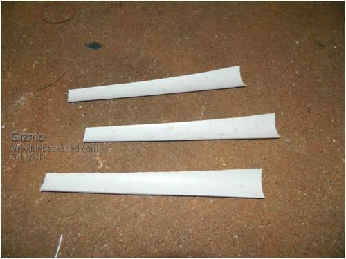 Well the little windmill threw a blade. Broke clear off, left with half a turbine. I'm guessing a sudden furl at speed did it, and this is a typical problem with two blade turbines, there is a lot of stress in the turbine when the windmill furls to a new direction. The best way I've heard the problem explained is like this. Take a broom handle, or any long stick, and hold it in the middle. Now hold it vertical, up and down, and turn yourself around on the spot, like a windmill furling. Easy. Next rotate the stick 90 deg so its horizontal, out to each side of you, then try to rotate on the spot again. The stick will resist, and you need to hold it much tighter. Now imagine this stick was spinning around, like a turbine, and you try to rotate on the spot. You will feel strong pulses in the stick, as it rotates through horizontal and vertical position, and in a windmill these can break off blades and shake just about everything above ground level. The problem is non-existent with 3 blade turbines, they have a natural balance. So I decided to make a new 3 blade turbine, just for fun. First I machined up a bit of HDPE. Then used a hole saw to cut 3 slots at 120 degrees. Cut 3 blades from some 40mm PVC pipe. And reshaped to get a nice airfoil. Fitted to the hub, held in place with some metal screws. Finished turbine. Coat of paint to help block UV. I'll put it back together tomorrow when I'm out at the block. Cant wait till I get to play with some bigger windmills