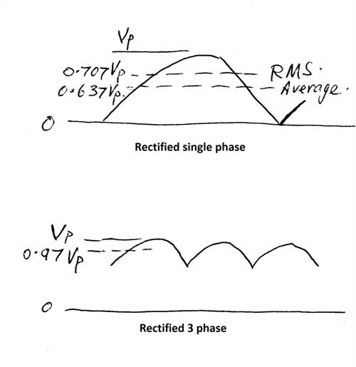 I don't know what the average of a rectified 3 phase signal is & really don't feel like doing the maths.