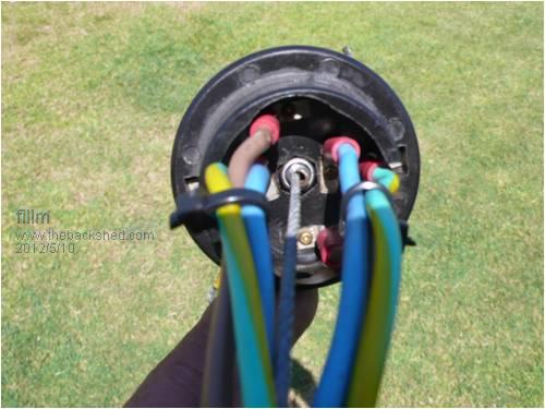The slip ring is held together with a 6mm bolt which allowed me to drill a 2.5mm hole through to allow 2mm multi strand cable to pass through.
