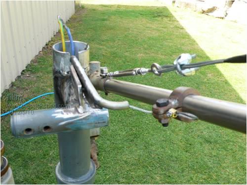 Where it has surprised me, is by adding a 5kg weight to the pull rope the extra weight pulls the cable up each time the tail does a little furl but does not allow it to return to the stop . The furl moment is lowered a little( approx 20K ) but after a couple of gusts and at about 1/2 furl the weight has enough force to pull the tail into full furl and hold it there untill the weight is removed . With the blades in the full furl position and the power taken away from the blades it is now a whole lot safer to short the mill if required to do a full stop as well as reduces the loading on the tower. But if just left locked in furl with the GOE222 blades they will still give some power in high wind and so far not out of control.