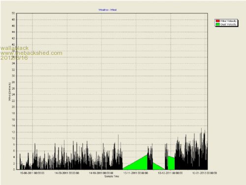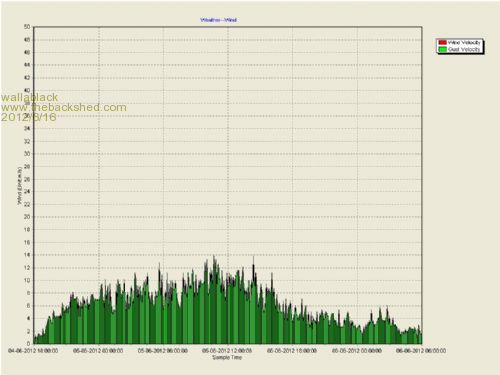 The more I am looking into it the more I like the idea of GE222 or NACA20 profile blades. I am not going to gear it but instead I want to try different wiring on my stator. Why? Cos if it no good I havent spent a million hours building it. I still have 4 kids which need a bit of time too lol. The decogged stator is awesome, it takes nothing to spin but that does not mean it will make good current. The reason for this project is to try different things and learn a bit along the way. My mills and panels are all grid tied but will be changing this to a 24V install in the near future. A couple of weather station files...wind speed in m/s on the vertical axis.