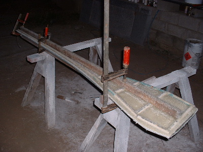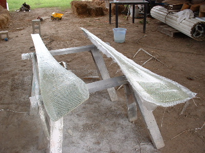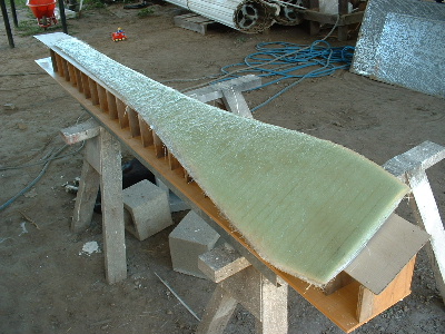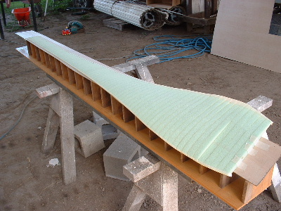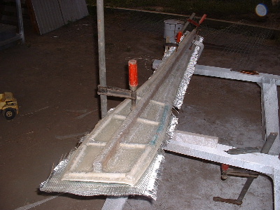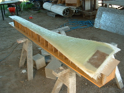 The first of the blades is now curing in the moulds. We use only woven glass for a few reasons,