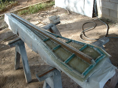 For moulding, it was waxed with a mould release wax and sprayed with a release agent, gelcoated, and plenty of glass over with strengthening ribs to keep it straight. Each side was done seperately and had to be left long enough for the f/glass to cure well enough to hold the shape. Edges cut off with a diamond saw and sanded back to give the required gap between the 2 halves.