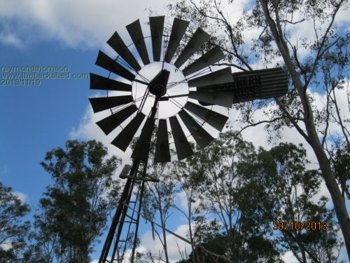 We finally made it! The windmill is up and running thanks to all who contributed information. The raising process was a bit hairy requiring both truck and tractor in tandem because of damp grass. But the legs were exactly on target and all was well. Climbing up to put the oil in was an interesting exercise and not to be repeated too often. The old bore did not perform so the plumbing was re-arranged to suck from the nearby dam. We are in drought conditions and drawing from just a few cm of water but it is working well. I might get the bore attended to when the water table returns to normal but it is very old and a blast of water down it produced a heap of rust so we might stick with the dam water. It has been a great experience and satisfied the objectives of aesthetic appearance, preservation of an Australian icon and of course the practicality of pumping water. Thanks again Raymond |