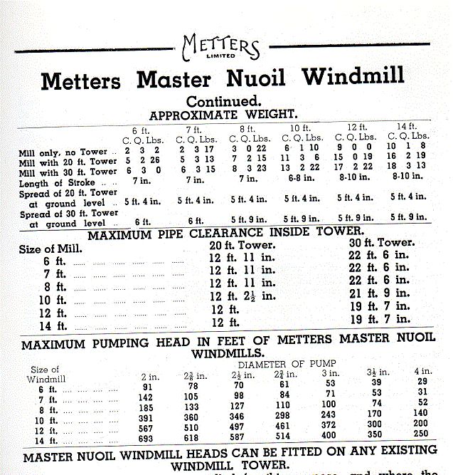 I found another table at www.windmillsareus.com.au showing spome pumping capacity for Iron Man windmill. Also some info at www.vintagewindmillpartslist.com for Z pattern SC windmills. Every bit helps to make the picture complete. Raymond |