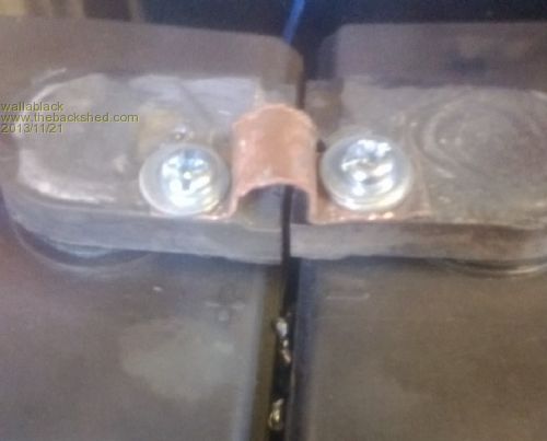 GOOD idea. I initially thought of just drilling a hole through them so half of the hole would be on one link and half would be on the other link. I would then put a bolt directly through the hole with a washer on each side of the link and clamp it up tight. A big enough bolt would carry enough current but then there would be no give or movement in the terminals etc. Foolproof systems do not take into account the ingenuity of fools. |