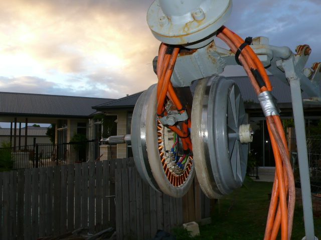 Heres some pics of the neo dual , the output so far has been very promising but needs good wind to start .. Have seen 750w easy in 35+ klm but where I am trying to get the big improvement is in 10 to 20 klm . Have had Glens pic logger on for a couple of months now and hve made a new set of blades which started at 3.8m dia , they were to big and flexy and hit the tower so they are now down to 3.3m and seem to be going Ok .Being able to see the difference in start up wind speed and output at different wind speed is execelent for tuning the blades. There is definate problems with rotor strength even with the resin strengthing I moulded on , after sitting for a period in one position it can distort slightly and start to pole out. Rotor strength is essential , any way will leave my bit at that and its good to see others going down the neo path as there are big gains in output to be made as long as the input power is there , good wind and good blades... Regards Phill PhillM ...Oz Wind Engineering..Wind Turbine Kits 500W - 5000W ~ F&P Dual Kits ~ GOE222Blades- Voltage Control Parts ------- Tower kits |