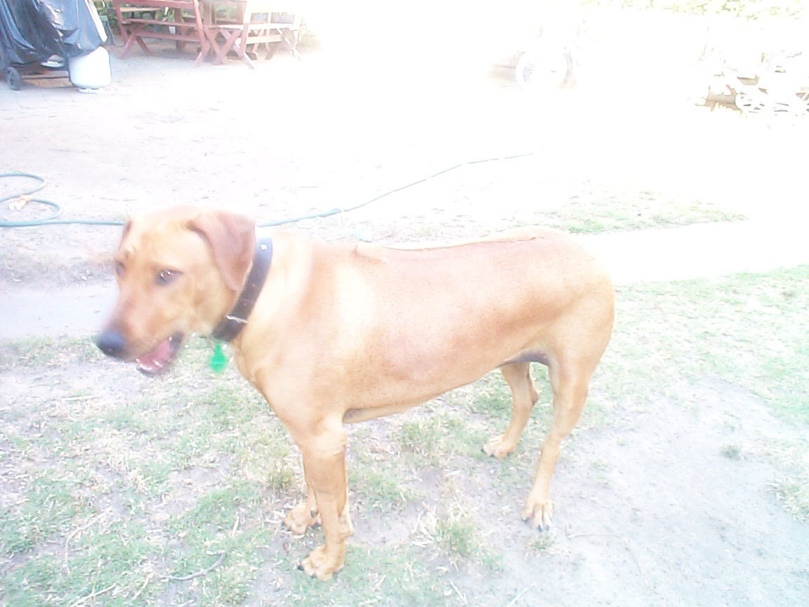 that dowgs name is Bully the Rohdesian Ridgeback, they are usually fairly mean but this girl is as  soft as jelly has never bitten anyone and after a warning bark will lick you to death, i didnt want a tough dog just a mate to keep me company when im at the block playing windmills. Trained very early to be kind they make a great companion, they normally cost from $500 + but i got her for $250, shes 12 months old now and weighs 40 kilos. I enclose a photo its a bit bright but you will notice that the ridge on her back actually goes backwards hence the name