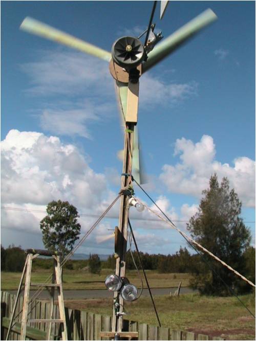 So far have made blades from nice 1100mm piece of Poly found down in the mangroves while crabbing, put the turbine head together with bits and pieces of front end of Rodeo 4WD and of course side of F&P for vane.