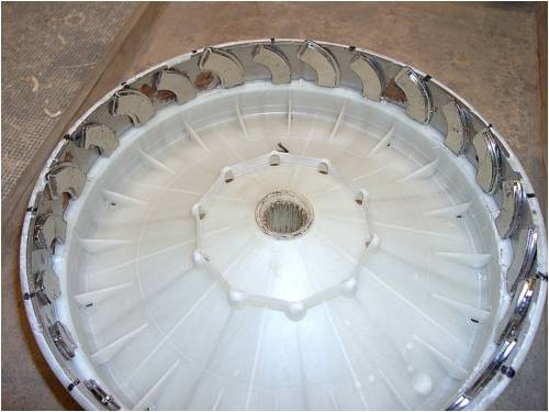 Here are a few images of the magnet hub. I placed the magnets with the hub on the shaft so I could see where to line up the magnets so they were in phase with each stator coil, and used a brass rod to position them. I hooked this up and it spun at about 250 RPM without anything(glue) holding the magnets in place. They didn't move a bit. At this point I need to get a larger ammeter to do a bit more testing. I may have to build a piclog now. By the way thanks for the site and all the info. I love to tinker with DIY energy projects. I felt like I won the lottery when I found a F&P machine here in the states, they are not easy to come by here. |