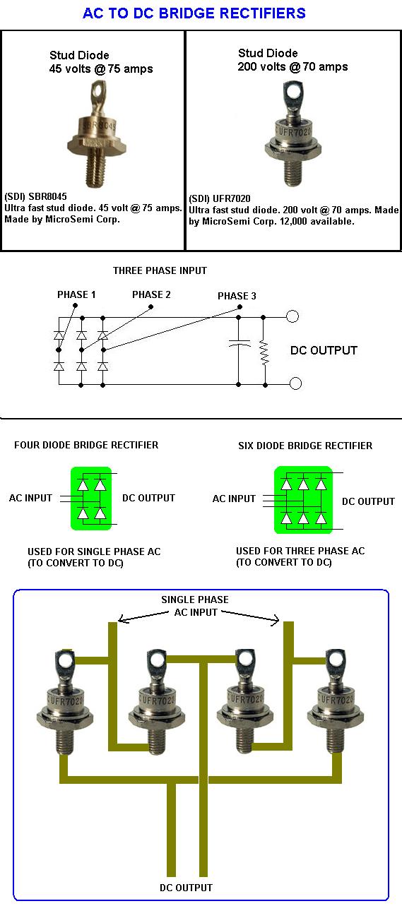 As you show some excellenct drawing of the diodes which is good and help other to understand the system and also very much simpler many metal workshop use Mig welding ,plamsa cutter all use diode setup as you shown and many diode can be brought from welding repair shop as sparepart or find one at scrapmetal yards as some of mig welder thrown out for newer model