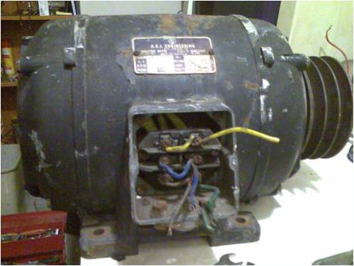 This is the A.E.I. Engineering motor I am working on. It was a dual delta and wye setup. 1435rpm, 7.5 horses and 10.8 amps.