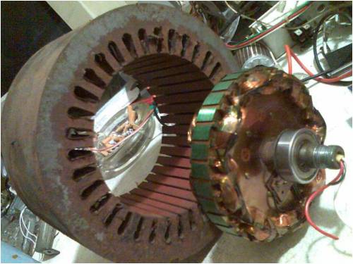 Cheers and thanks for the link Dinges. I suspect the number of poles may have been eight or even more...was hard to really tell as the wiring was looped around every eighth slot, with a new run created at the adjacent slot until the entire stator was filled...much like an overlapping torus stator. The config for delta and star was created by strategic cuts and rejoins on either side of the stator and I couldnt see clearly what was going on through all the insulation. The RPM of the original motor was 1435rpm. I intend to focus on using this as a low RPM generator, if I can create the three different configs (or two at least) I would have a happy bonus. Intended voltage output would be 40 volts DC (maximum) at 20 amps max and also have another second config outputting 240 volts AC at a max of 10amps. I will likely just experiment with wind as the wind up here in Townsville is not the best for nine months of the year. I like the idea of using a twelve volt battery to start up a high torque low RPM motor (much like a roller door motor or car starter motor if need be) that would be attached to the generator along the rotor shaft to run it and disconnect the battery when the specs are reached for output of the generator be sufficient to run the attached motor...I wasn't going to mention this as yet as I have not been able to find much info on a "self running" generator... ...I have not reached that point yet but my entire evil plan will hopefully run a marine fish tank 24/7 and any extra juice is a bonus.http://cr4.globalspec.com/member?u=25757 http://www.instructables.com/member/OzzyRoo/ |