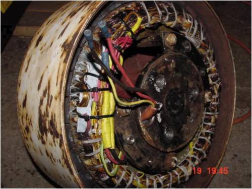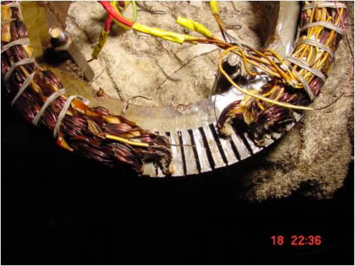 Sadly I forgot to get a pic of the coil itself. I needed 7 of them. 5 single coils, and 1 dual series coil. ie 2 coils wound 1 after another without cutting the wire between coils. We then place them into the stator and it looks like this