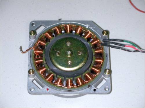 So if you want this generator to cut-in at 12V you'd need to rewind with about 6 times as many turns (1.5Vac *1.41 = 2.1Vdc; turns ratio = 12Vdc/2.1Vdc = ~6)