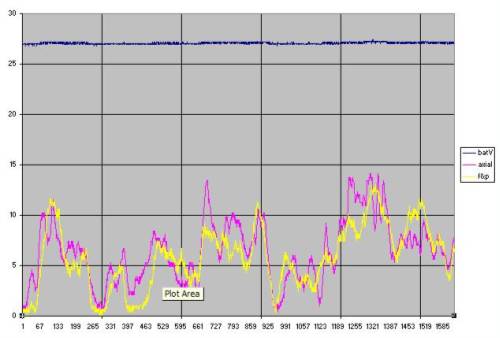 The graph below has battery current for each mill and battery voltage. The current is multiplied by 10 for clarity to show on the one graph. The test was for 5 minutes.