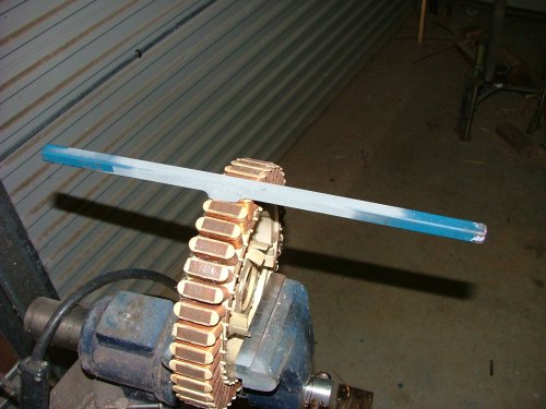 Hi Glenn, This is a little more elegant than the bar of an F-clamp that I used, just pushed down between the poles. How much dressing of the pole faces was needed to get clearance on the rotor? The amount of angle you have will reduce the cogging a heap. Gordon. PS edit: The bar I used was smooth sided. None of the enamel was damaged on the windings during the bending process. I did not rush it, which helps as well. become more energy aware |