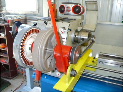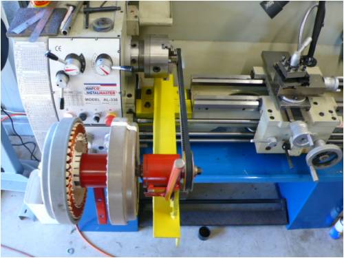 Hi Gordon and everyone , Hopefully soon I should have a test bed set up for doing the performance tests with caps , I looked at setting a dual stator up direct into the lathe chuck but feel a little hesitant about the start being so quick , also the speeds do not give much away for low speed performance data [spindal speeds are 65 100 180 200 235 280 300 330 360 500 550 700 840 910 1095 1200 1400] .. This may be ok for initial tests but misses a lot between 60 to 275 rpm , so as time allows I wiil make a pulley drive that mounts into the chuck and mount the ststors into the gap bed with an idler that can slowly engauge the stators at 2:1 or whatever ratio is required .. Any thoughts are muchly appreciated