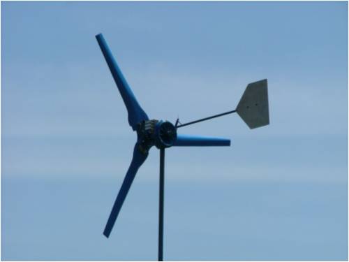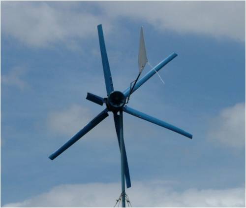 I arrived home Friday to see the tower shaking itself to pieces and making all sorts of horrid noises. The 6 blade turbine had thrown a blade, and the out of balance was shaking the "bleep" out of the tower. I shorted it out to bring it under control, and tightened the guy wires, everything was loose. The broken off piece of blade was near by, clean break through most of it, where a bolt goes through. No sign of impact, I think it just "broke off". These blades are 2 years old now and starting to fatigue, so time to replace them.