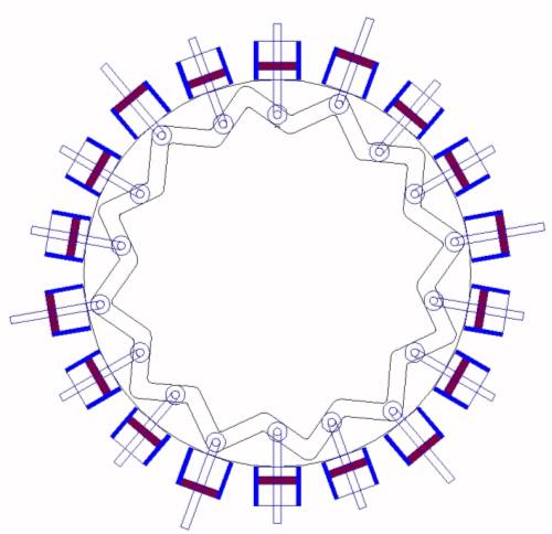 I reckon friction between the zig-zag guide (sinusoidal would be better) and the many rollers would gobble up too much power.