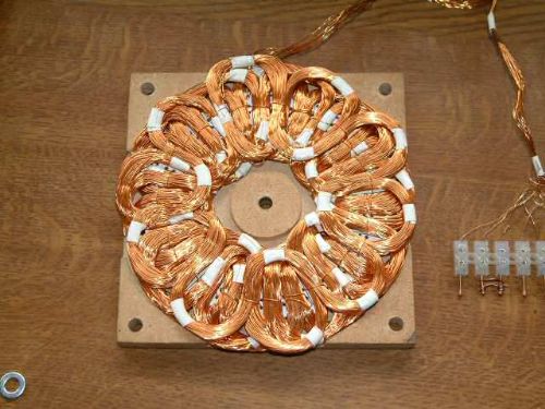 I had wondered how to describe the way I wound the coils on my AxFx alternator. The spiral in spiral out does nicely. I started at the inside turn, and wound both ends out, simultanously and in opposite directions. This is what I used the mould for, that I gave a pic of here.