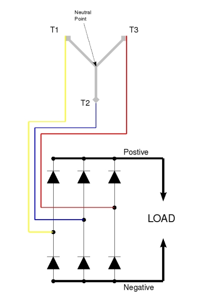 I use six IN5408 schottky diodes rated at 3amps to form the rectifier. I will beef up the diodes later but the ones I am using are suitable for hand turning and impressing the missus.