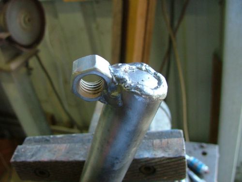 and welded around the end and 3 plug holes. I also welded a nut as shown, you will see that this is used for later.