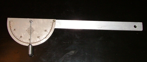 I made my own angle dial from a protractor, length of flat bar and a weight.