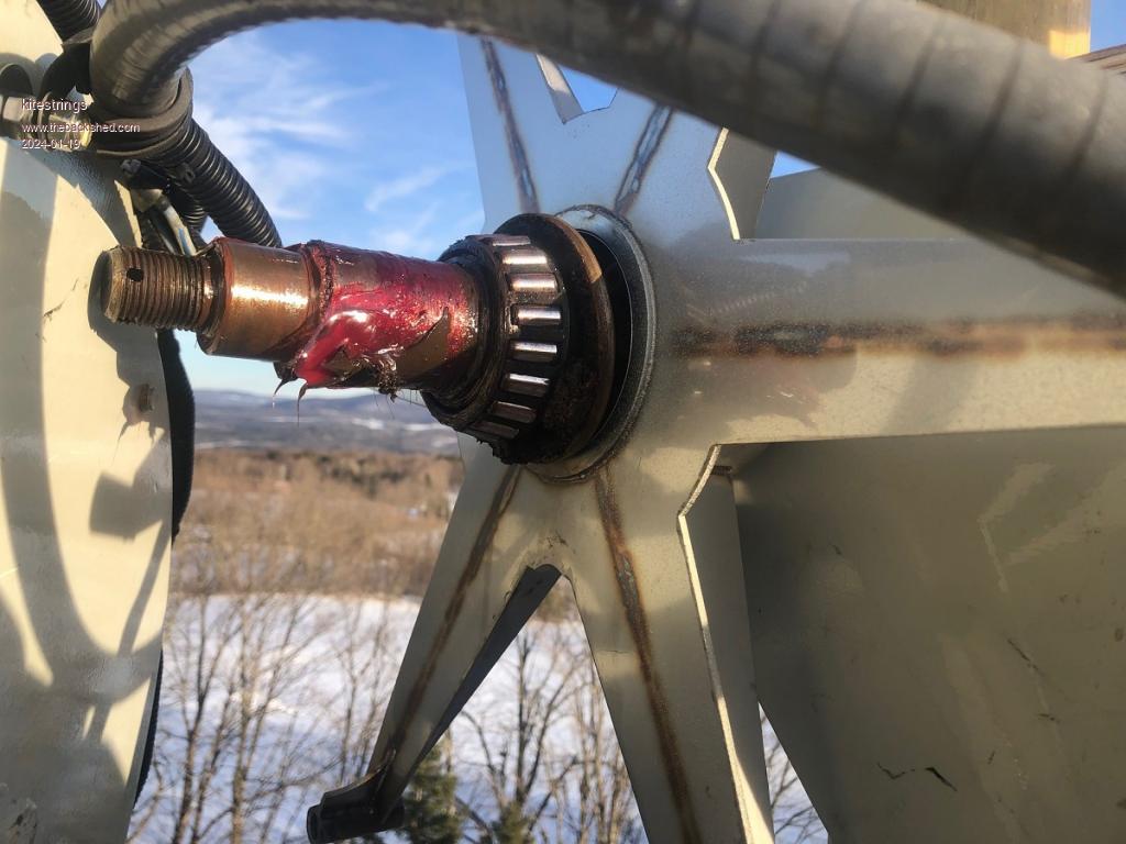 We had a fair number of challenges this past year.  Lightning damaged one of the controllers in September.  We had some water migrate into one of the blades over and started some rot in the root-end.  We'd just repaired that and found we had a bearing failure; yep, the downwind, harder to get to one.