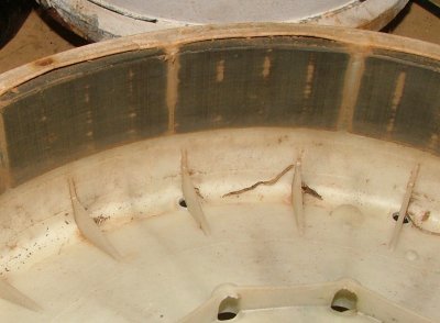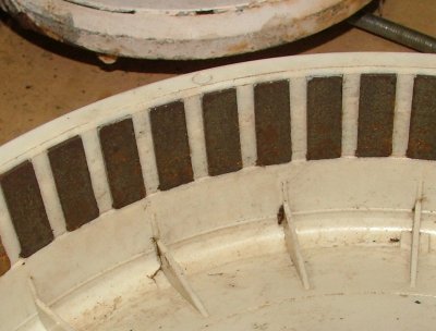 F&P later changed the hubs to these wider magnets. Each of these magnets is actually made up of 4 magnets side by side, you can just see some faint lines across the magnet where the poles meet and have attracted metal filings. I believe they did it to reduce the whine noise made by the washing machines on spin cycle, but I could be wrong, may have been cheaper this way.