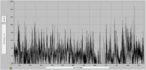 graph 1 is the yearly logged 10min ave windspeed graph in m/s.