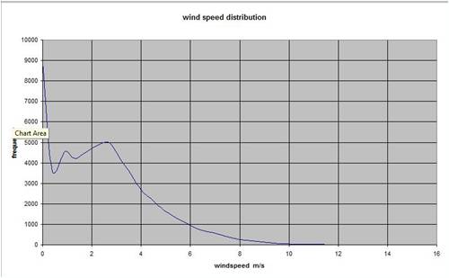 in the last year, my location which I would classify as OK only for wind, recorded only 1, 10min period in 55000 recorded [0.0018%] during the year of wind with an average of 15m/s, and only about 100, 10min periods in 55000 where the windspeed averaged over 10m/s. look at the tail on the graph above.