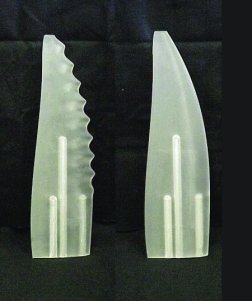 It outlines the use of wavy bumps (tubercules) in the leading edge of an airfoil shape to both decrease drag and increase lift of the airfoil in a fluid.