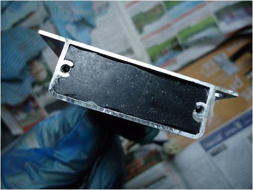 The tail was removed & a coke bottle sawed in half. The coke bottle cap was carefully torqued down to 5 ft/lbs & the bottle taped onto the body in place of the tail - the blades were then removed & reversed. Voila!! job done
