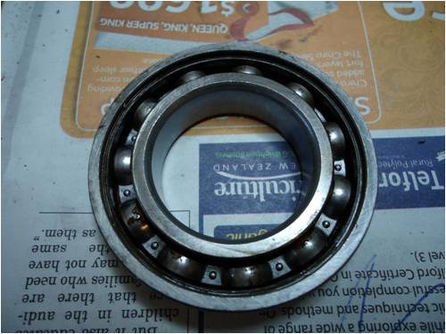 As Bob mentioned, this is the bearing that was hardly rotating, you can see rust inside and needless to say there was no trace of any grease in it - probably just a drop of oil: