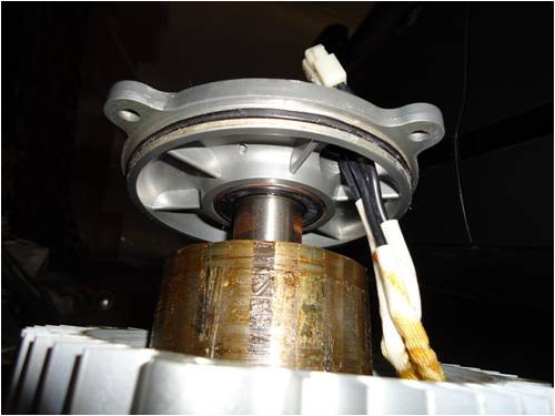 After splitting it into alternator and the "body" (housing sliprings and yaw bearings) we can see the controller bolted up to the alternator: