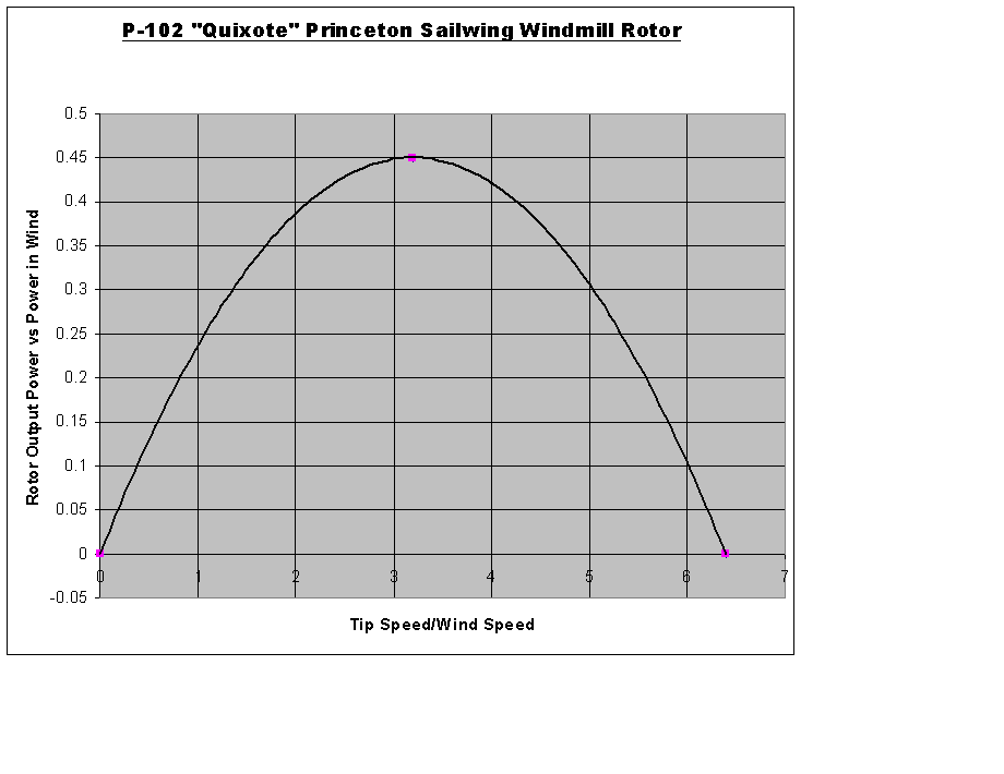 You can see that peak power occurs at roughly one half the unloaded TSR; For example, my 20’ diameter windmill was designed for a TSR=7. Unloaded, it will run at a TSR approximately = to 14.
