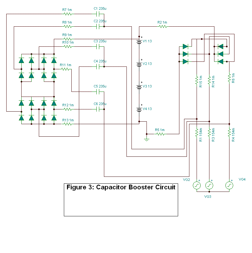 "I don't have any simulation software, so cant offer readers any explanation why you have shown negative power output for a cap arrangement model. Possibly the model is not right, as I have only seen positive power gains with my doubler and quadrupler cap arrangements. "