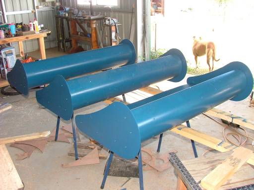 Painted them blue to match the rest of the wings. Held on with pop rivets. While I was at it I added a meter to the tower, it was a little short at 1.5 meters high
