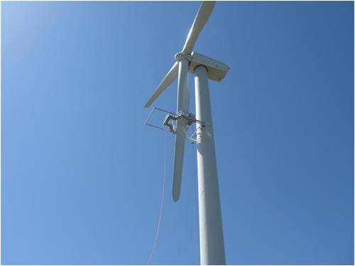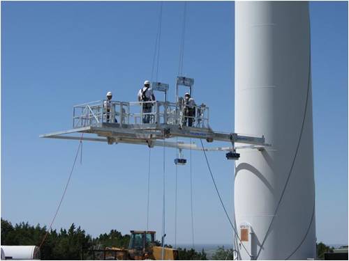 The platform you see in the pic's was provided by a 3rd party and are becoming pretty common in large wind. Mostly used for blade inspections when a ground based telescope won't do the job. We used it to stand on during rigging. Lordy that was an experience being on that.