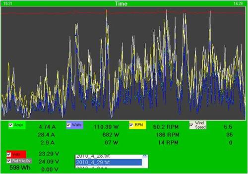 28.4 amps , 682 watts , 186 rpms , 35 mph , 16 m/s