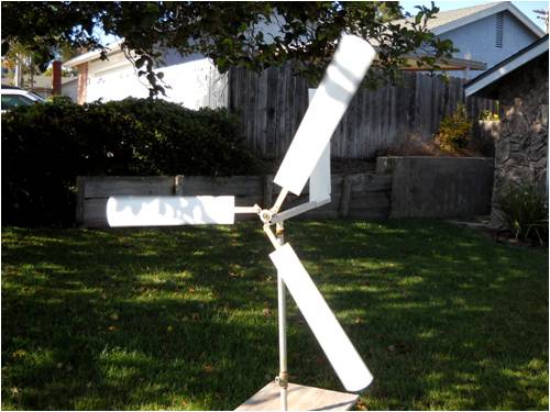 [Quote=Niall1]erm...why is the sky a consistent shade of blue ?... This is San Diego, mate; we pay a little extra each month for it. We simply think of it as part of the price of paradise, that's all. As far as putting this thing up into the wind, it's basically a pin-wheel at present. If I were to stick it up in the flow, it's scream 24/7 and I doubt I could convince my neighbors it was merely 'kinetic art'. Every now and then it's in the right place at the right time and it spins probably in the neighborhood of 400 or 500 rpm and it gives off a singing whine that increases in pitch and intensity as it accelerates; kinda scary actually!